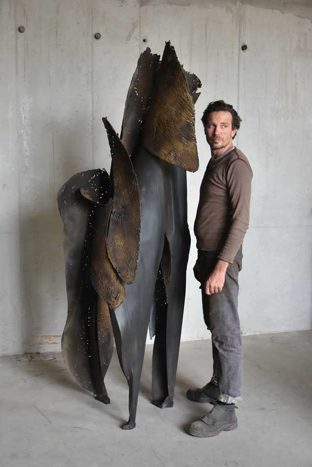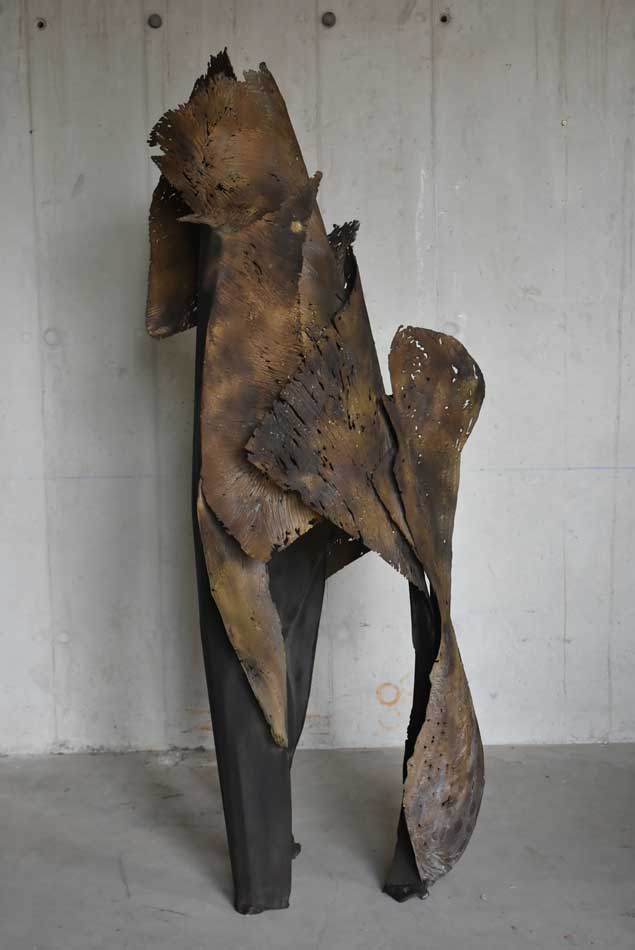 Toujours fasciné par l’humain, il troque leurs peaux contre des surfaces semblables à des écorces, leurs visages prennent des allures organiques ou minérales .