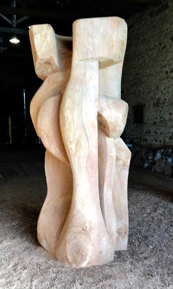Depuis 1982 | Il pratique la sculpture sur marbre (suite à de longs séjours en Grèce et Italie), puis travaille le fer (natures mortes et végétaux) et depuis 2000 le bois dans des billes à taille humaine (peintes ou brulées). Ces troncs d’arbres sont travaillés à la tronçonneuse. Ils questionnent la croissance, l’articulation, l’enveloppe, "autant de dimensions anthropologiques que nous partageons avec eux".