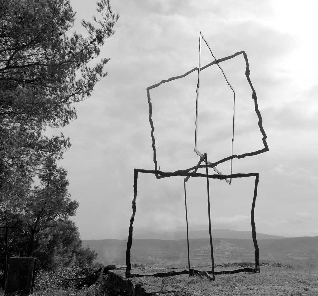 Comme les volumes de mes œuvres sont uniquement esquissés à l’aide de leurs contours, le matériel qu’elles nécessitent - et par conséquent leur poids - sont négligeables. Ces caractéristiques facilitent non seulement leur maniement mais constituent un aspect essentiel de mon travail, dans la mesure où on peut les installer dans des endroits difficiles d’accès.