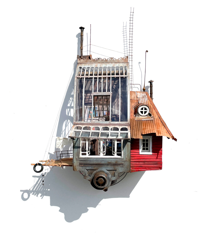David Mansot, artiste de la région Rhône-Alpes, accroche depuis 7 ans aux murs de nos maisons ses cabanes à rêver.